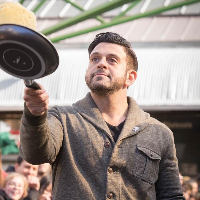 During his visit to London, Adam took part in the Better Bankside Pancake Day race in south London on Tuesday (04.03.14).