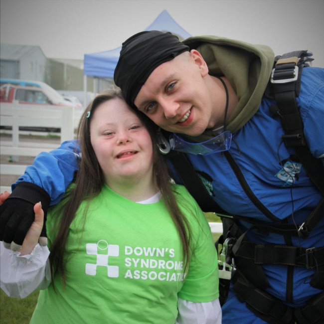 Aitch has raised more than £50,000 for the Down’s Syndrome Association after braving a 15,000-foot skydive.
