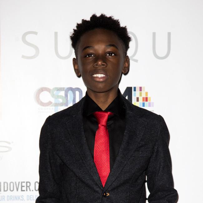 Alex Hibbert sports red tie on red carpet