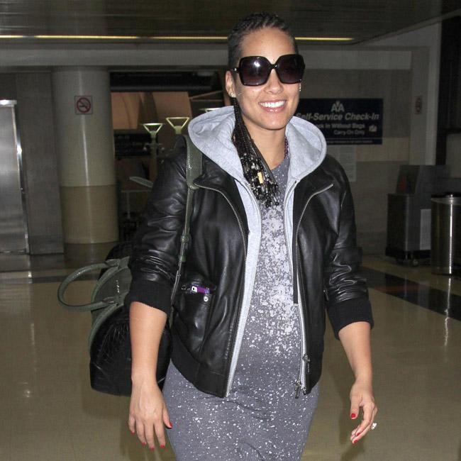 Alicia Keys is now seven months pregnant, but by the looks of things she’s ready to pop already! The ‘New York’ singer wore a sparkly grey dress as she arrived at LAX with her bulging bump in full view.