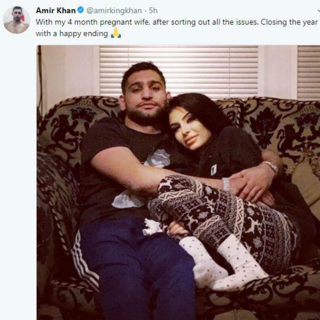 Amir shared a picture of them both on Twitter on Saturday (11.11.17) and wrote: "With my 4 month pregnant wife, after sorting out all the issues. Closing the year with a happy ending," and Faryal shared a quote from popular internet writer RM Drake on Instagram: