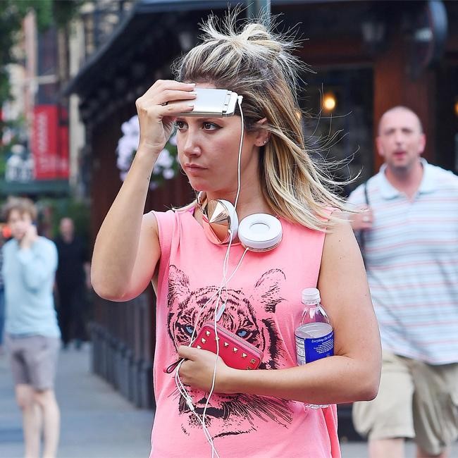 Ashley Tisdale didn’t look happy to see the cameras waiting for her as she left a gym in East Village, New York City.