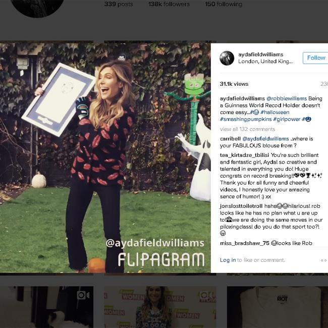 She also wrote: "@robbiewilliamsBeing a Guinness World Recod Holder doesn’t come easy… #halloween#smashingpumpkins #girlpower (sic)."