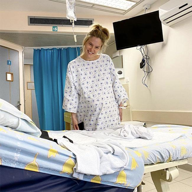 The Israeli model and presenter revealed the happy news in Hebrew, with the clip beginning with TV host Assi Azar pretending he’s going to become the face of the blonde beauty’s eyewear range, Carolina Lemk, before she drops the baby news.