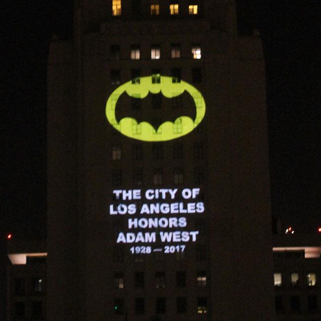 Adam West was honoured with a bat-signal lighting up Los Angeles on Thursday (15.06.17).