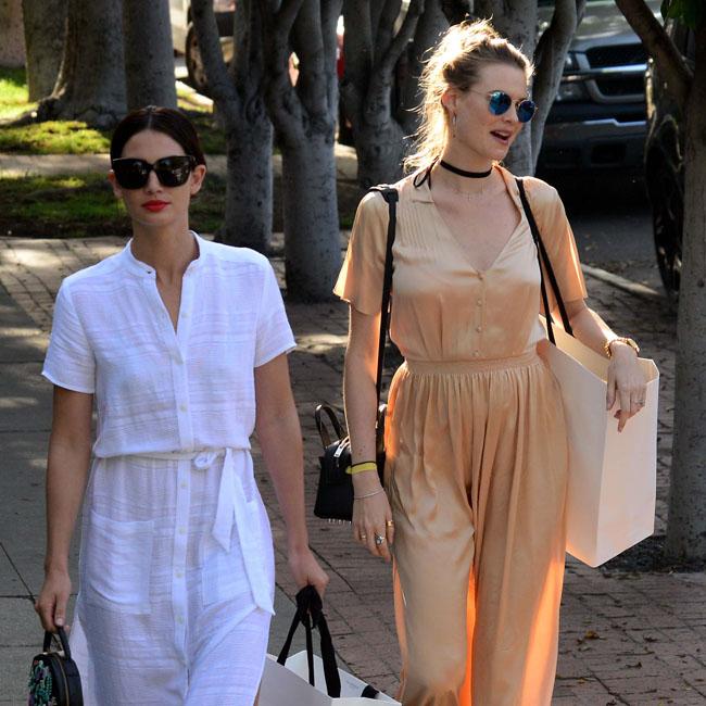 Behati Prinsloo covered up her bonny baby bump in a stunning gold dress whilst out shopping in West Hollywood with her BFF Lily Aldridge on Tuesday (05.04.16).