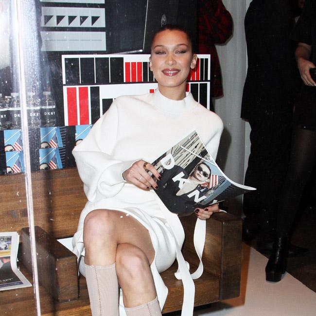 Bella Hadid poses at DKNY store