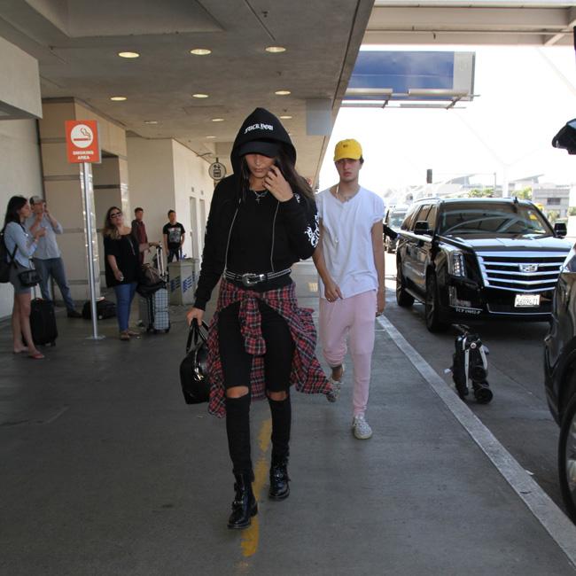 Bella Hadid bid to go incognito whilst catching a flight out of LAX airport in Los Angeles on Wednesday (17.08.16).