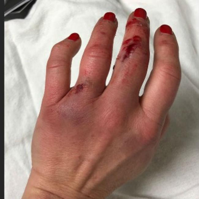 "OK I have nothing broken, we got the X rays back and I’m fine, I’m just really bruised, which is amazing to me. My hand is pretty bad and ugly. I’m honestly shocked there’s nothing broken."