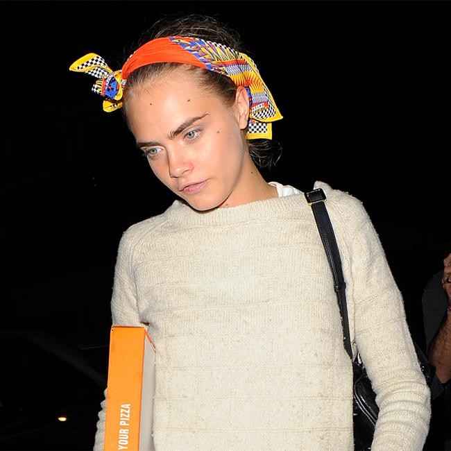 Cara Delevingne gorges on pizza