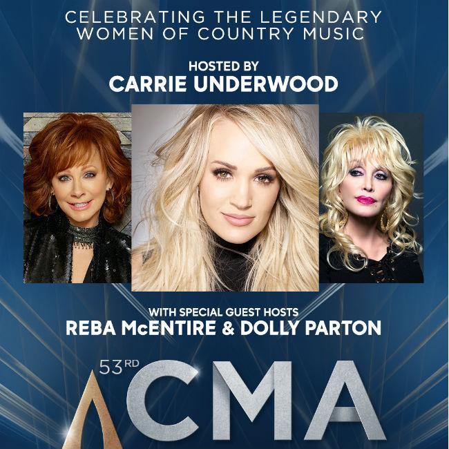 Carrie Underwood, Reba McEntire and Dolly Parton will host the 2019 Country Music Association Awards.