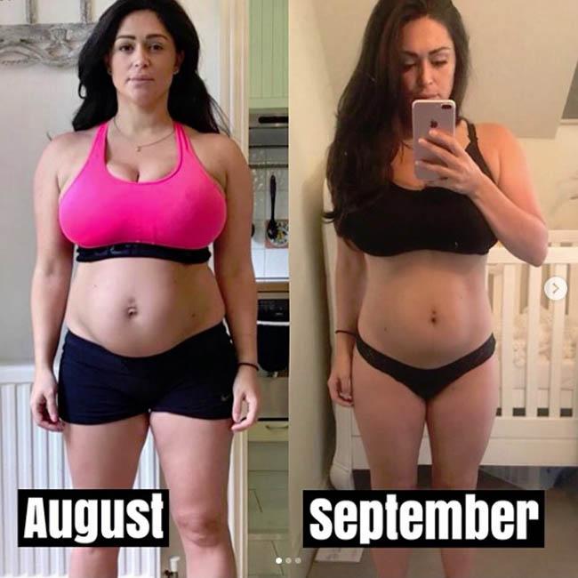And the new mum took to social media on Tuesday (11.09.18) to share a side-by-side photo of herself in August compared to a month later in September, showing off her dramatic weight loss.