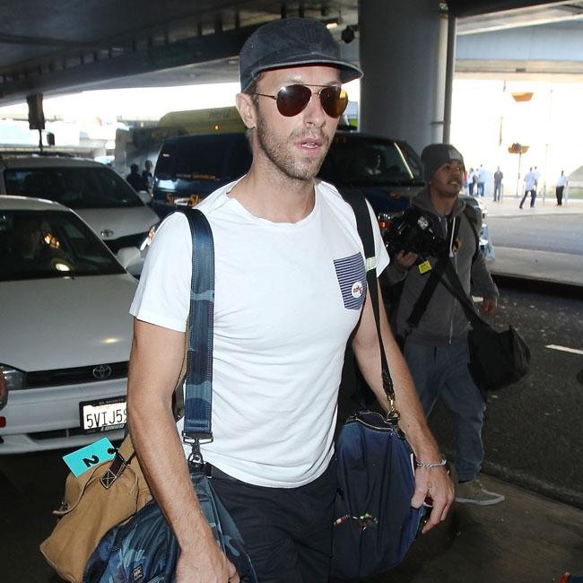 Chris Martin had a brief trip back to his native UK this week, but he’s now jetted out to Los Angeles and was greeted by hoards of admirers as he touched down at LAX. The 37-year-old singer looked slick in a simple t-shirt, a snap back and aviator shades, and is clearly incapable of packing light as he had several bags slung over his shoulder.