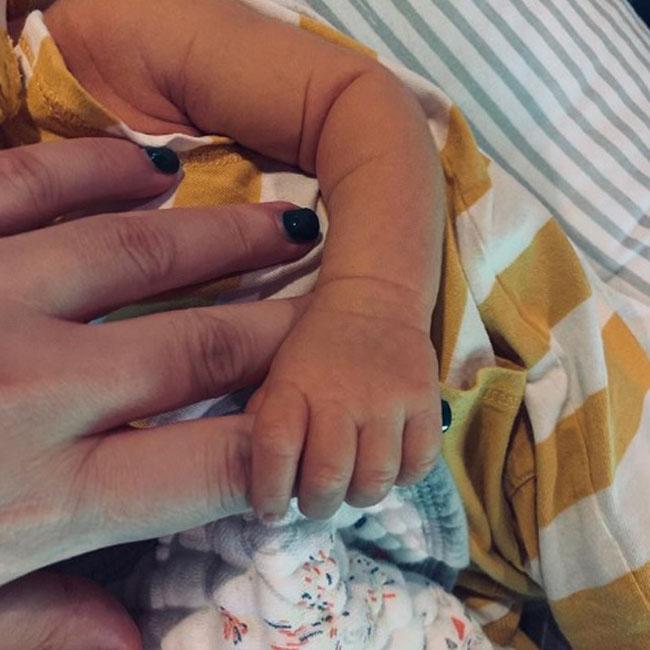 Alongside the photo of a newborn wearing a yellow-and-white striped onesie as they clutched her finger, Morgane wrote: "The most perfect Mother’s Day…I wish all you Mama’s the happiest of days today! [yellow heart emoji]"