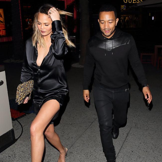 Chrissy showcased her tiny post-baby waist as she donned a revealing satin shirt-dress, perfectly matched with her ‘All of Me’ hit-maker husbands casual black ensemble.