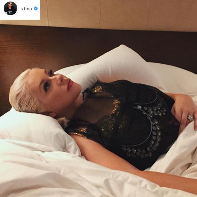 The ‘Candyman’ singer later shared a picture of her sprawled out across a bed, wearing a black mesh embroidered bodice, and hinted she was still overwhelmed by the moment.