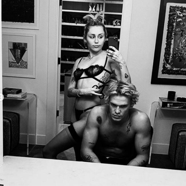 Cody uploaded a photograph of him in the studio on Instagram last week and Miley commented underneath: "Where’s the screen shot of me flashing u my boobies while you record. Tip: Smiling when you sing "helps pitch by brightening up the sound. (sic)"