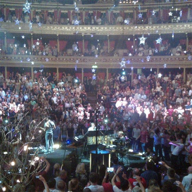 Coldplay showered their fans in star shaped confetti as they performed the first of their "last shows for a while" at the Royal Albert Hall in London on Tuesday night (01.07.14).