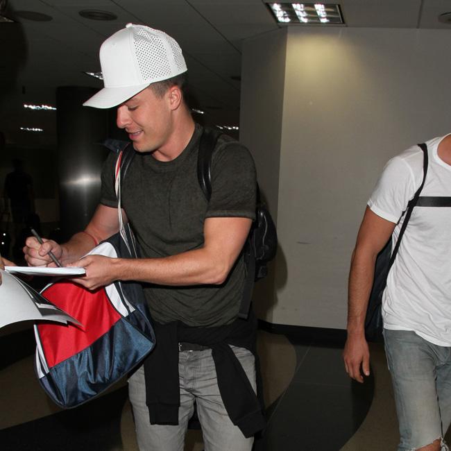 Colton Haynes channeled greeted fans at LAX airport on Thursday (18.08.16).