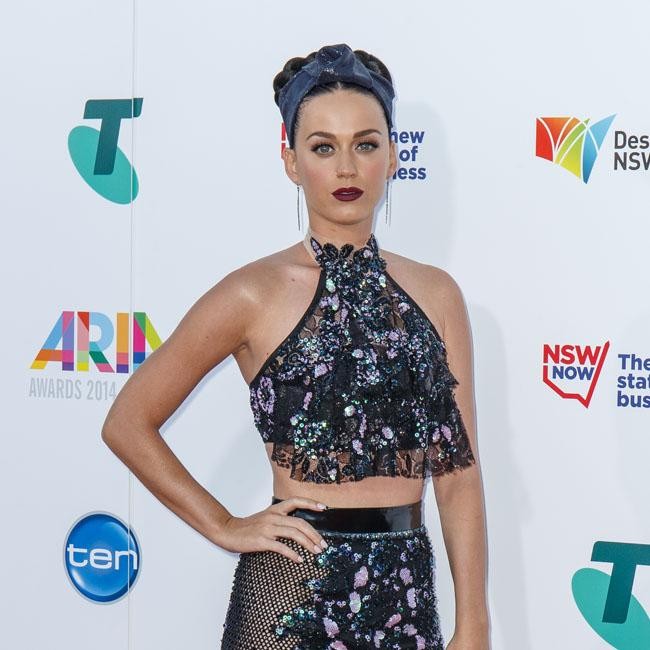 Katy Perry flaunted her curves in a sequinned halterneck top which exposed her toned midriff as she arrived at the ARIA Awards in Sydney on Wednesday (26.11.14). The ‘This Is How We Do’ singer also donned a matching fishnet pencil skirt, all designed by Perth based fashionista Jaime Lee Major.