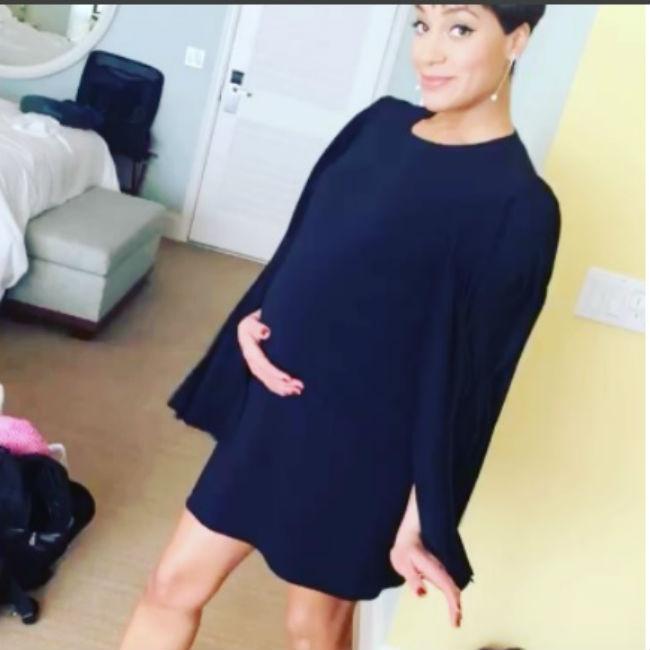 And she also shared a Boomerang image on Instagram in which she showed off her bump in a stunning short Burberry dress.