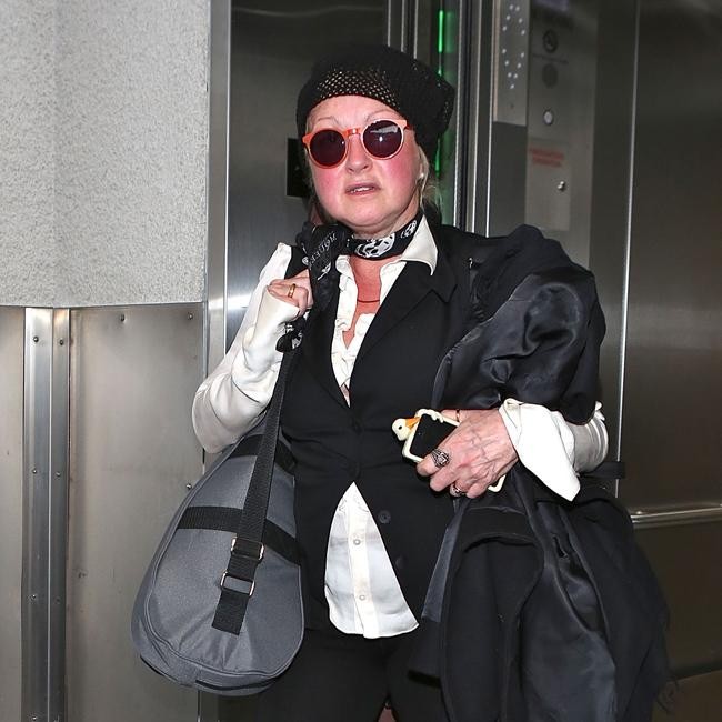 Cyndi Lauper appeared a little red in the face as she touched down at LAX on Monday (27.10.14). The ‘Girls Just Want to Have Fun’ singer wore circular, coral coloured sunglasses which did nothing to decrease the reddening of her face. It was no surprise that the 61-year-old icon was feeling hot and bothered though, as she lugged her bags through the Los Angeles airport.