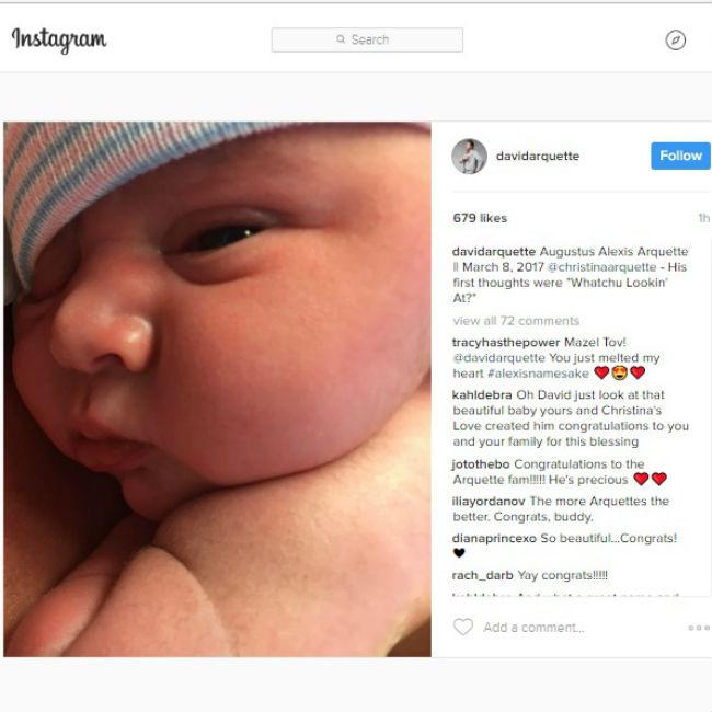The ‘Scream’ actor and his wife Christina welcomed son Augustus Alexis – whose middle name is in honour of his late sister, Alexis Arquette, who passed away last September – into the world on Wednesday (08.03.17).