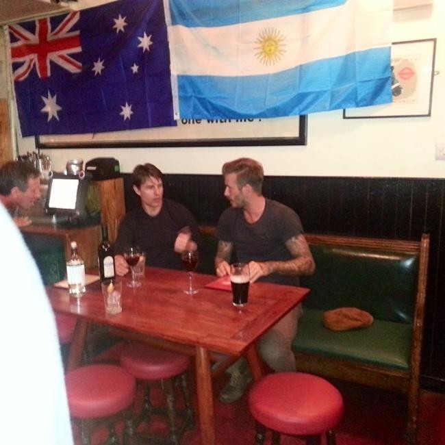 Another Instagram user also took a picture of the actor and soccer star, writing: "Another Monday night at the pub with David and Tom".