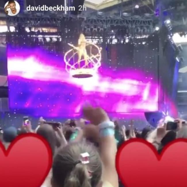 David shared a clip of Harper – his youngest child with wife Victoria Beckham, with whom he also has son Brooklyn, 19, Romeo, 15, Cruz, 13 – waving at the pop megastar from their seats in the VIP section on the stadium’s floor as she glided across the crowd in a lit up platform.