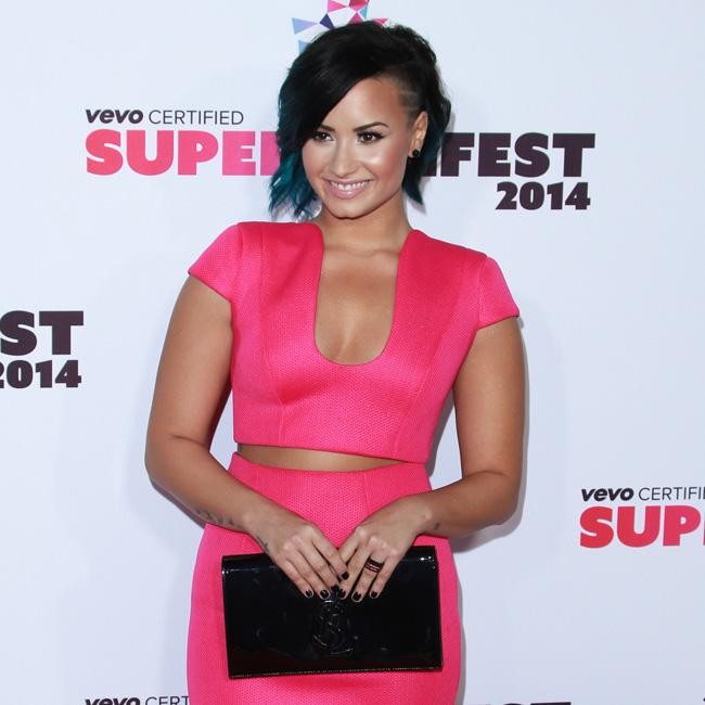 In a bright pink outfit, Demi Lovato was positively glowing at the Vevo Certified SuperFanFest in California. The 22-year-old took a break from her busy tour schedule and ditched her edgy image to glam up in a girly outfit.