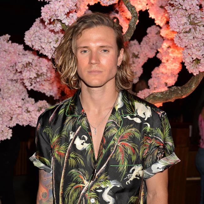 Dougie Poynter looked cool for the summer in a Hawaiian-themed palm tree top at the Warner Music Group and British GQ Summer Party at Nobu Hotel Shoreditch on Wednesday night (06.07.17).