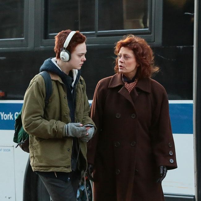 Elle Fanning looked virtually unrecognisable as she filmed scenes for her new film ‘Three Generations’ alongside her co-star Susan Sarandon in New York yesterday (18.11.14).