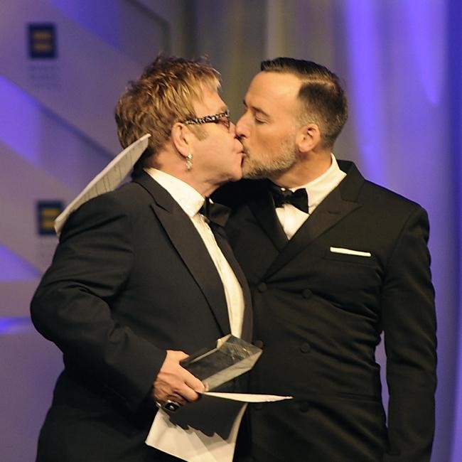 Sir Elton John embraced his partner David Furnish on Sunday evening (26.10.14) following a teary acceptance speech in Washington DC. The 67-year-old singer was being honoured at the 18th Annual Human Rights Campaign National Dinner at the Wahington Convention Center.