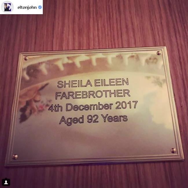 Last month, Elton paid tribute to Sheila at his first concert since her death in Hamburg, Germany.