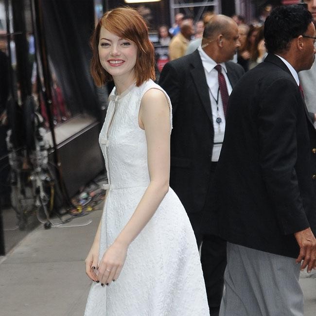 Emma Stone looked stunning in a white skater dress as she arrived for her appearance on ‘Good Morning America’ at Times Square in New York.