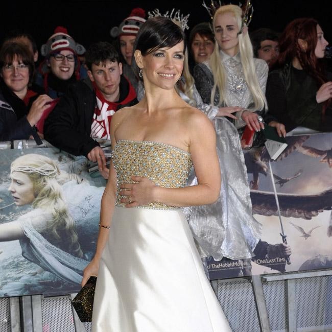 Evangeline Lilly stunned fans who had camped out to see the 35-year-old actress in London on Monday (01.12.14) when she appeared in an elegant floor length gown with a heavily-decorated corseted top. The star was in the English capital for the world premiere of her new movie ‘The Hobbit: The Battle of the Five Armies’ in which she stars alongside Benedict Cumberbatch and Orlando Bloom.