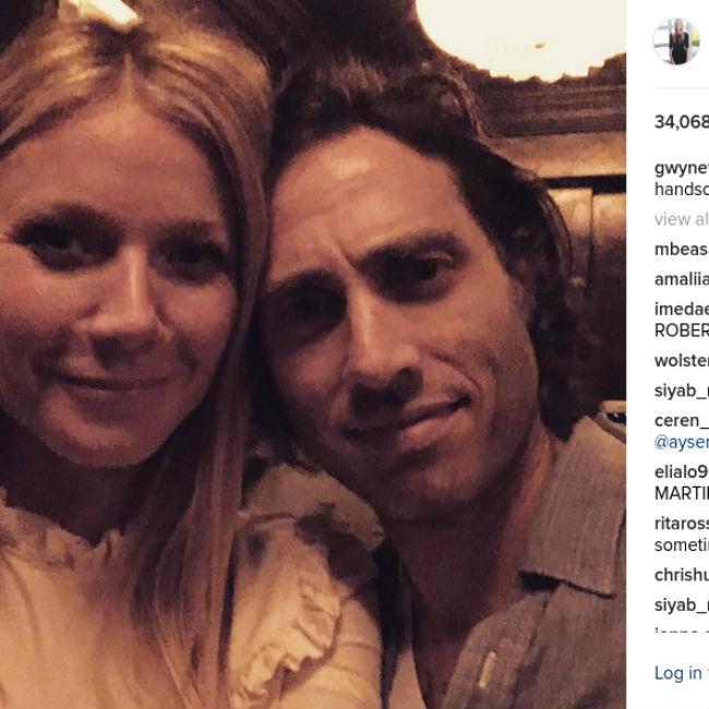 Alongside a grainy picture of the couple sat side-by-side, Gwyneth wrote on the photo-sharing website: "Happy birthday, handsome."