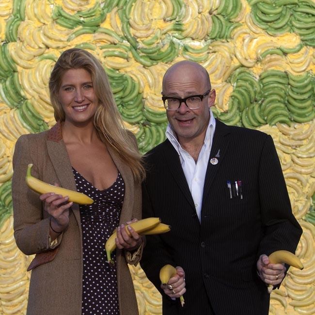 The two TV stars were in London’s Clapham Common this morning (24.02.14) for the unveiling of a giant billboard made from over 5,000 of the fruits to mark the start of the Fairtrade Fortnight ‘Make Bananas Fair’ campaign, which has seen the organisation team with Colombian farmer Foncho Cantillo to petition the government to intervene after retail prices of bananas fell by almost half over the last decade, sparking financial problems for struggling growers.