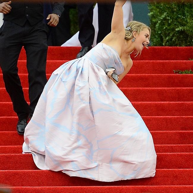 The 24-year-old actress took a tumble at the Metropolitan Museum of Art in New York City earlier this week after her glamorous Tom Ford dress got caught up under her feet.