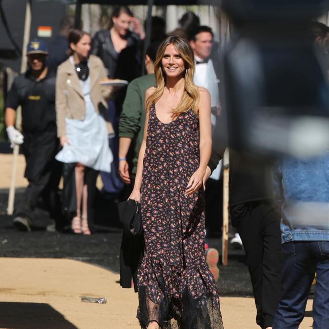 Heidi Klum looked pretty in a floral-print dress on set of ‘Oceans 8’ in Los Angeles on Monday (06.03.17).