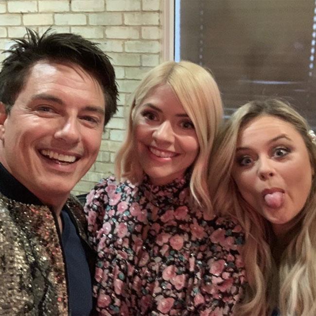 John Barrowman, who was a guest on the episode of ‘Celebrity Juice’ they were filming, along with his ‘I’m A Celebrity… Get Me Out Of Here!’ pal Emily Atack, shared a backstage snap of him with their captain Holly and the ‘Inbetweeners’ star at the studio shooting the new series of Keith Lemon’s ITV2 panel show.
