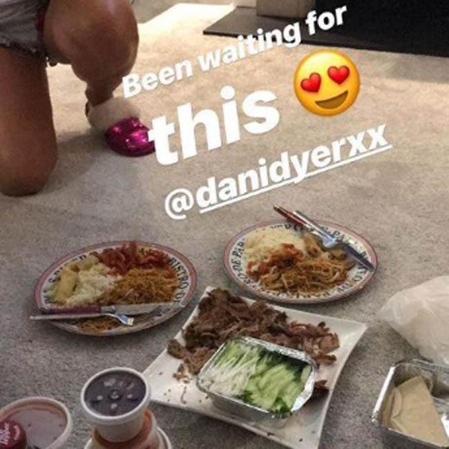 Dani uploaded a picture to her Instagram of the egg fried rice, Peking duck and spring rolls laid out on a blanket, writing: "All we have wanted @jack_charlesf"