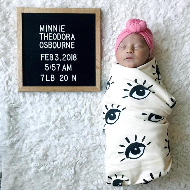 Jack shared a photo of their new arrival next to a board which listed her full name as Minnie Theodora Osbourne, as well as other information such as her time of birth, which was 5:57 AM.