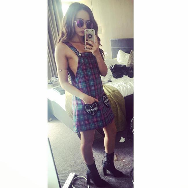 Jade Thirlwall channelled her inner rock chick in a patterned pinafore dress prior to gracing the stage at V Festival over the weekend.