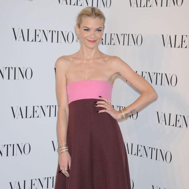 Jaime King looked rather pleased with herself in a floor length plum-coloured skirt and tight, pink boob tube at a colourful celebratory event at Valentino’s flagship store on New York’s Fifth Avenue. The 35-year-old actress and model was stunning as always in the striking outfit, completing the look with several metallic bracelets on each arm.
