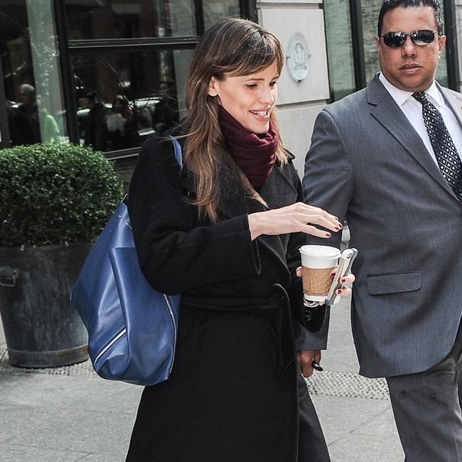 Jennifer Garner looked sophisticated in a black full-length coat and scarf during a coffee run in New York City.