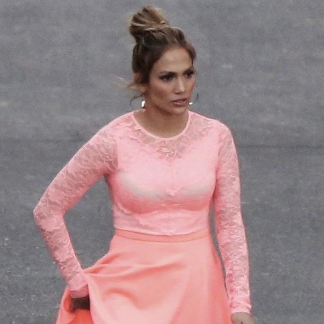 Jennifer Lopez looked pretty in pink as she arrived at the ‘American Idol’ studio in Los Angeles. The ‘On The Floor’ singer re-adjusted her skirt as she made her way into the building.