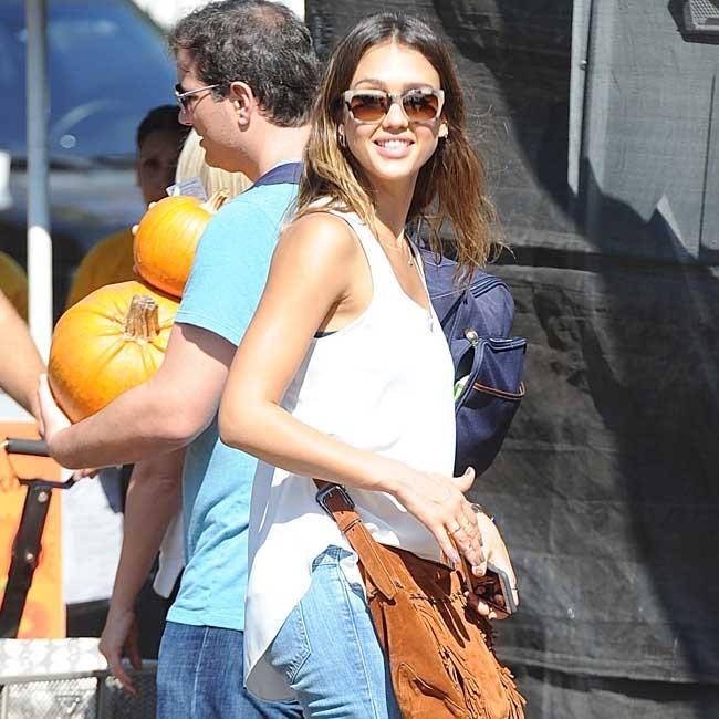 Yummy mummy Jessica Alba enjoyed a day out with her children at a pumpkin patch. The ‘Sin City’ actress was spotted grinning from ear to ear, as she soaked in the beautiful sunshine. Alba, 33, looked every inch the Hollywood beauty, despite her casual attire, which included a pair of snazzy shades.