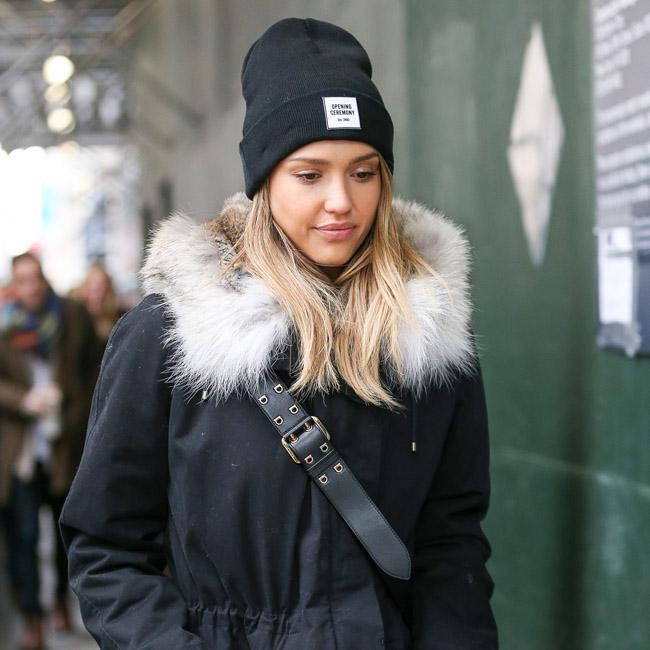 Jessica Alba has been battling the plummeting New York temperatures by snuggling up in a cosy coat. The ‘Sin City: A Dame to Kill For’ star wore a casual black beanie hat and coat with a fur-lined hood for a wintry walk around the city’s Midtown area.