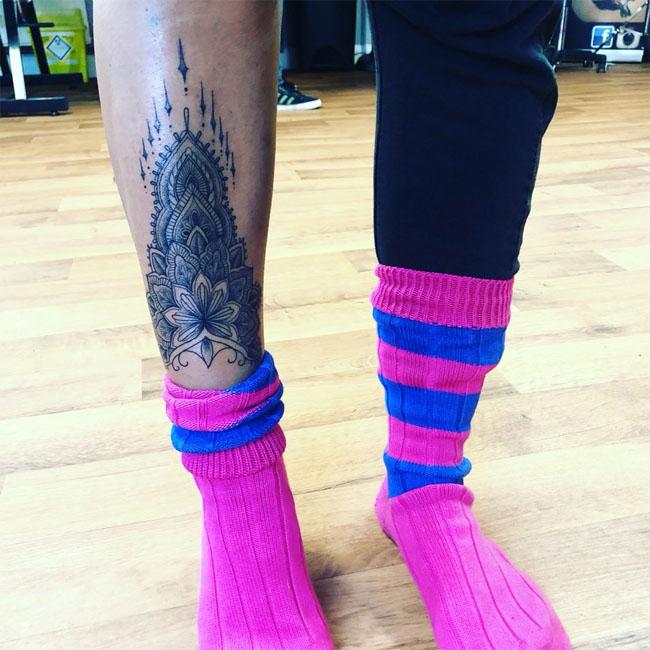 The 39-year-old former glamour model visited the parlour Artoria Tattoos in Essex, South East England, on Monday (17.09.18) to get the elaborate pattern on her shin.